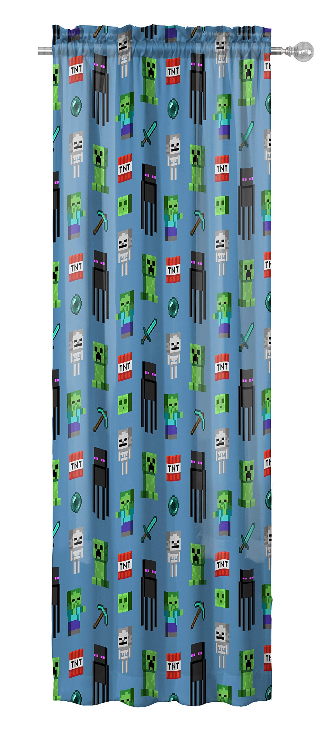 Jay Franco Kids Window Drapes - 4 Piece Curtain Set Includes 2 Tiebacks, Beautiful Bedding Room Décor and Easy Set Up, Blue - Minecraft, 63 Inch—