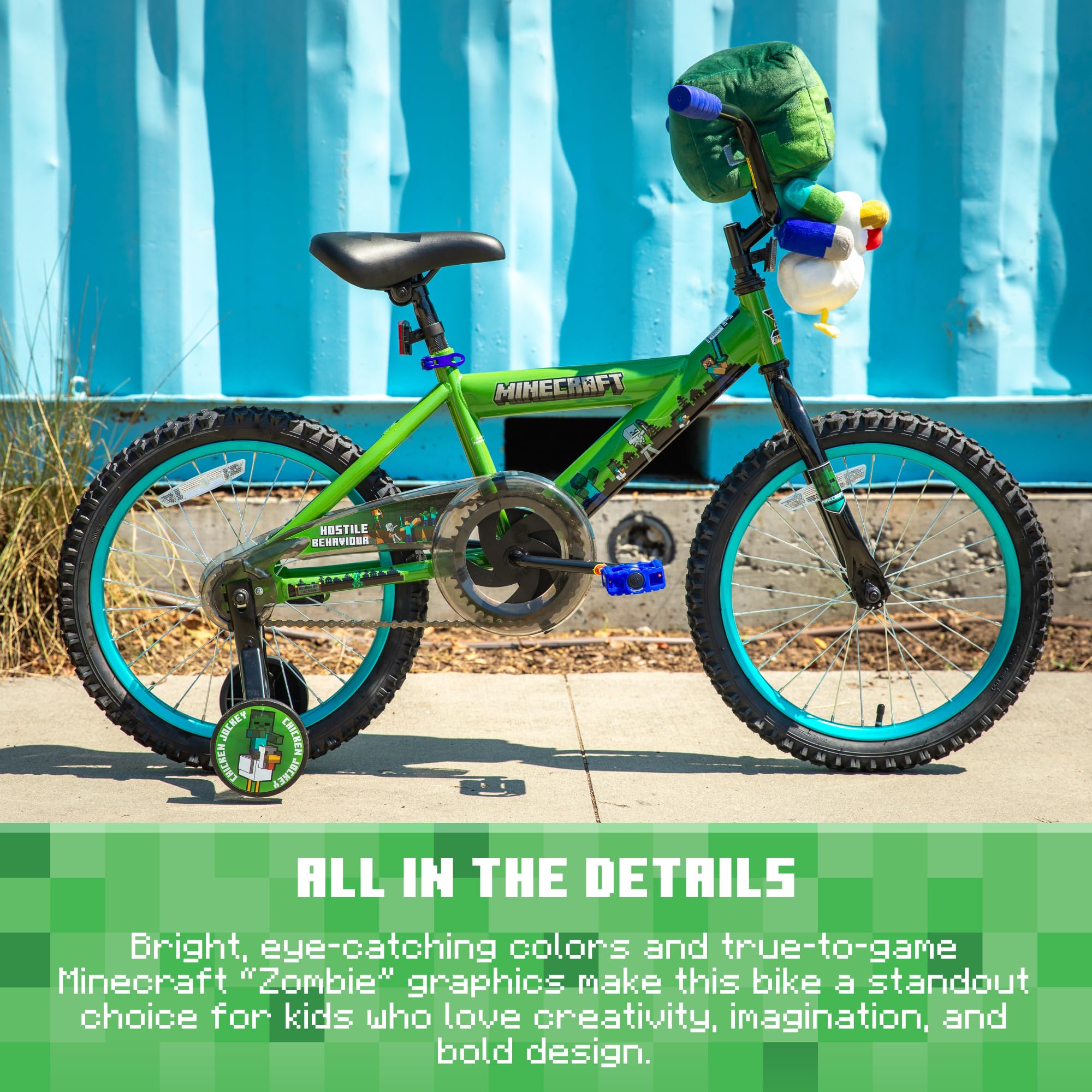 Minecraft 18-Inch Kids Bike - Unisex Bike with Creeper Graphics, Coaster Brake, Adjustable Seat, Removable Training Wheels, Ages 6-9, 42”-53” Tall